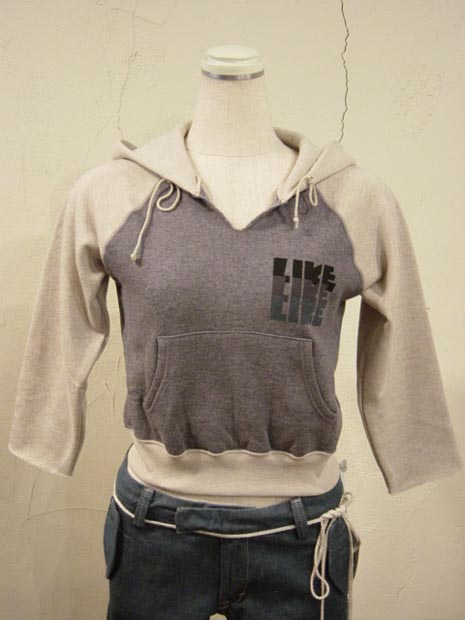 明日にはすっかり治ってますように!!ではでは早速インパクの御紹介です。まずはラグランパーカーです。ミニサイズでとってもかわいい。着丈が結構短いのでワンピに重ねたり、サロペットのインナーにしたりといった着こなしがオススメです。先日のカワズ君でオセロの松嶋が白いチュールのスカートにTシャツかスウェットのようなものを合わせて着ていたのがすごくかわいくて、私も真似したくて今回このラグランパーカーを購入しました。着るのが楽しみ!!ラグランパーカー:¥17850(税込み)