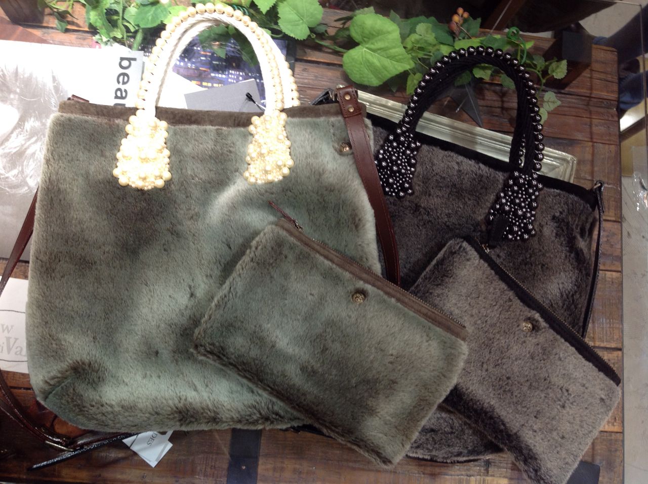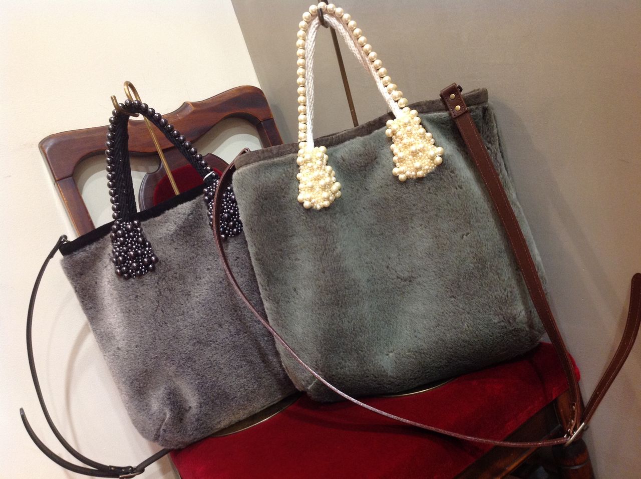 Fake fur Mouton × Pearl Rope Tote & Shoulder